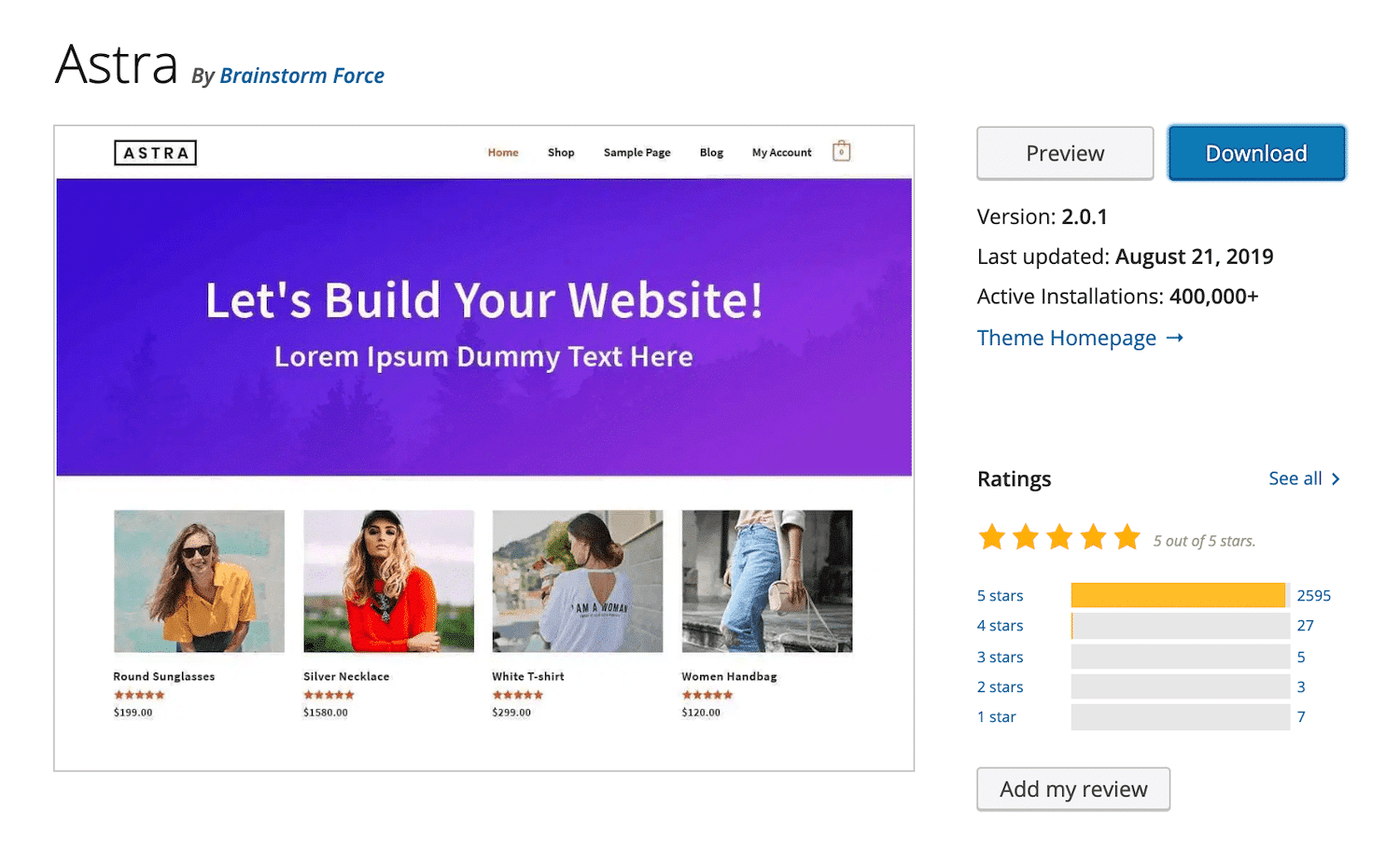 AstraはBrainstorm Forceが開発するWordPressテーマで、軽量性とカスタマイズ性を重視した設計が特徴です。無料版がWordPress.orgで配布されており、有料のAstra Proというアドオンで機能を拡張できます。ページビルダー(Elementor、Beaver Builderなど)やGutenbergとの親和性が高く、WooCommerceとの統合機能も提供されているため、企業のコーポレートサイト、ランディングページ、ECサイトなど幅広い用途で採用されています。