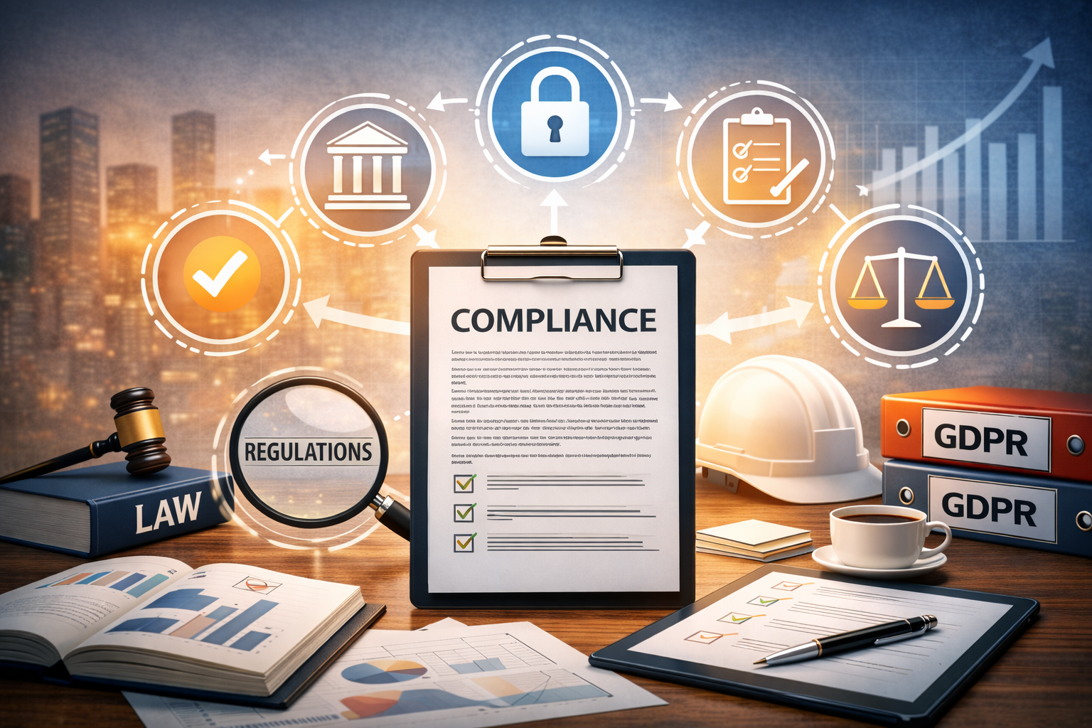 規制対応(コンプライアンス)は、法令、行政指導、業界基準、契約上の義務を組織として理解し、継続的に遵守するための仕組みを指します。主な目的は以下の通りです。